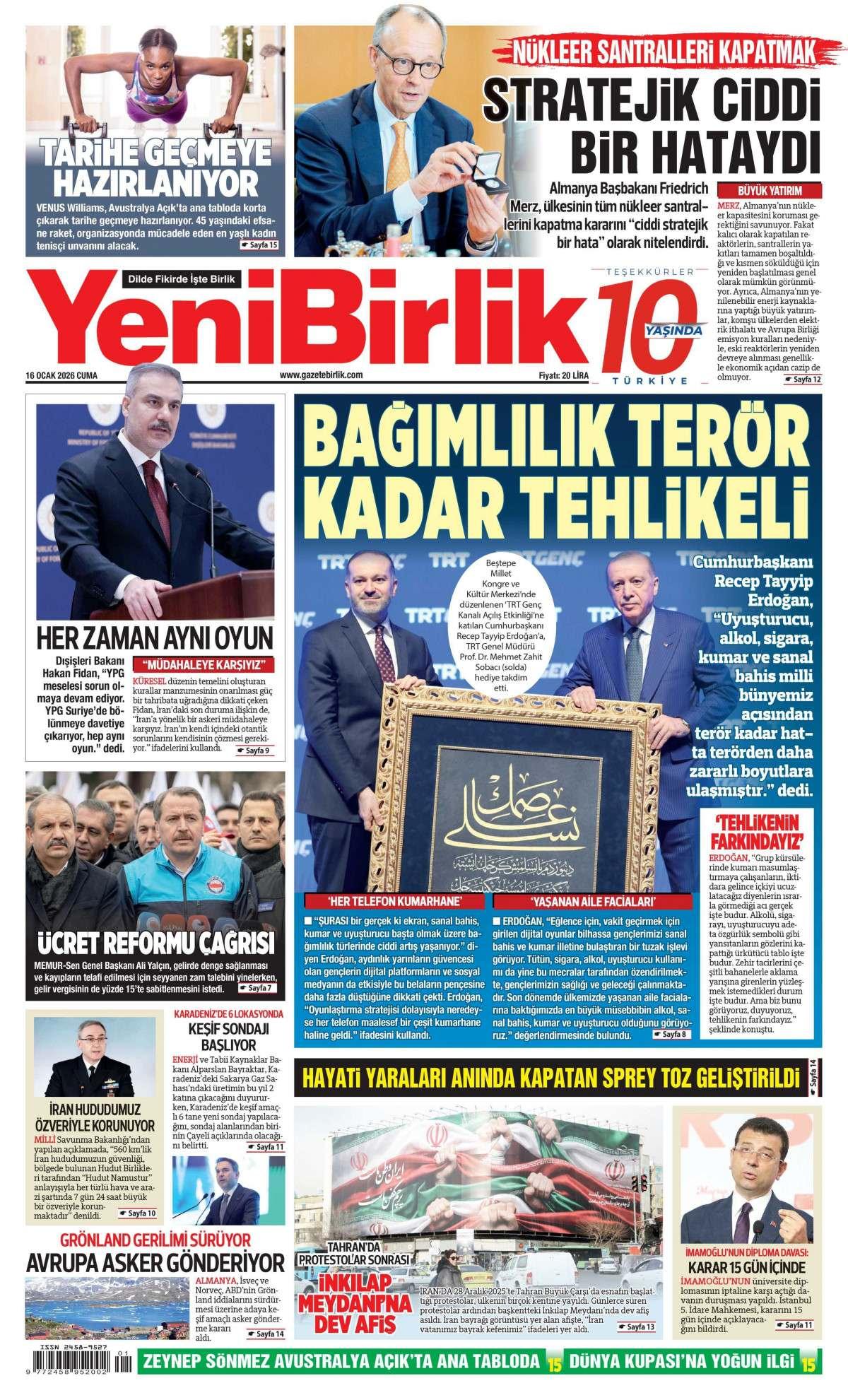 Yeni Birlik Gazetesi 17 Ocak 2026 Günü Gazete Manşetleri